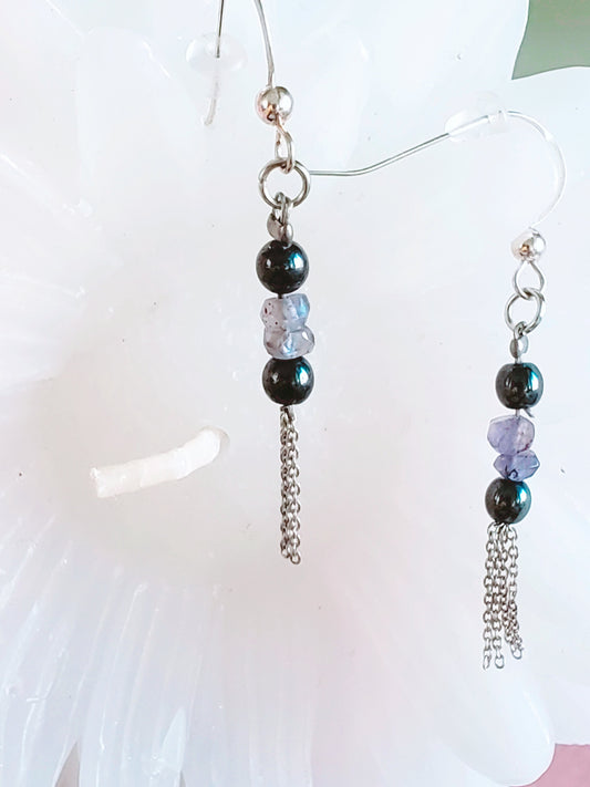 Dale un toque Delicado a tu Estilo con este hermoso Collar Combinado con sus Aretes en Plata 925 y delicada Piedra Iolite