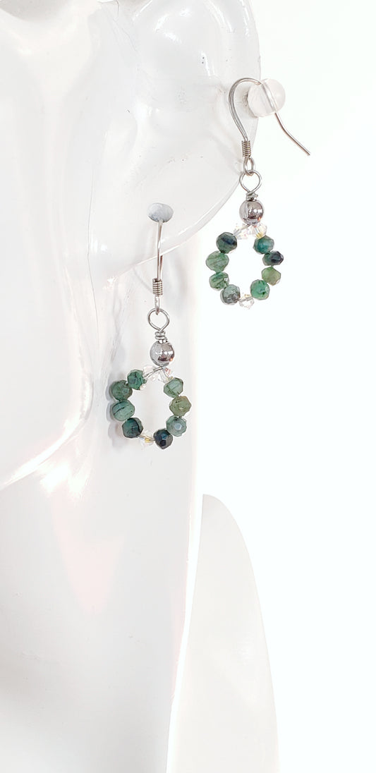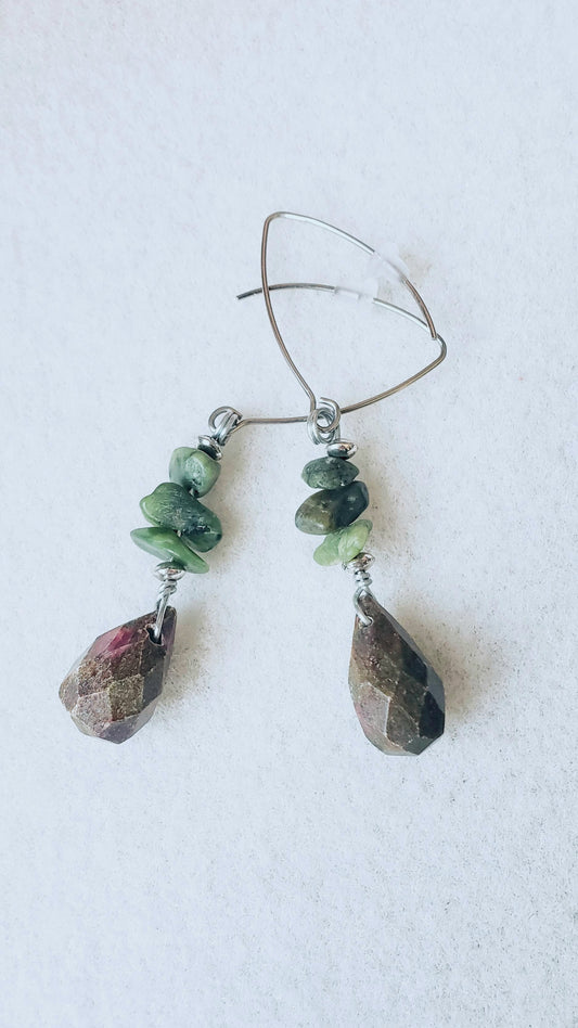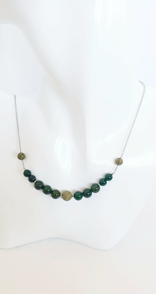 Delicado Collar y Aretes en Acero Inoxidable con Delicadas Piedras en Cuarzo Verde