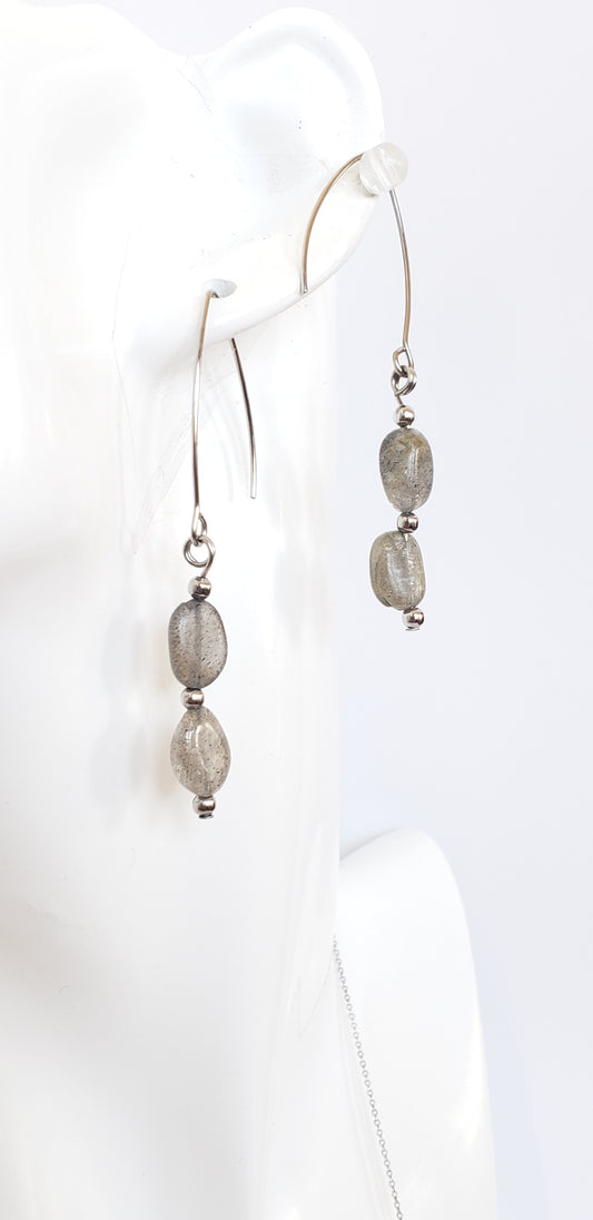 Este elegante juego de collar y aretes de labradorita está elaborado con cuidado y presenta un brillo único que llamará la atención sobre cualquier atuendo.