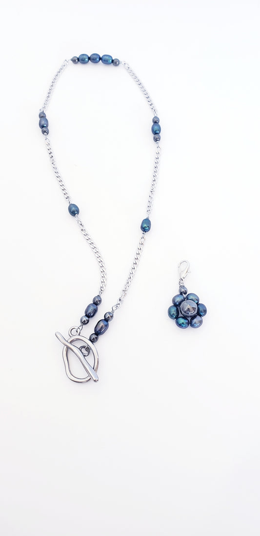 Conjunto de collar y aretes de Perlas Cultivadas de Agua Dulce con un Colgante desmontable en Flor de Perlas