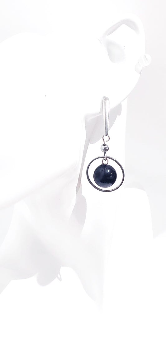 Diseño Unico en Collar y Aretes en Acero inoxidable con hermosas Piedras Ágata Negra