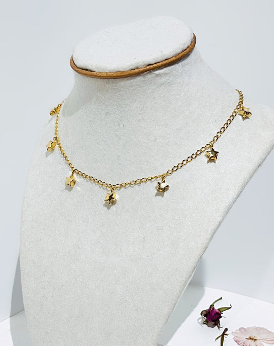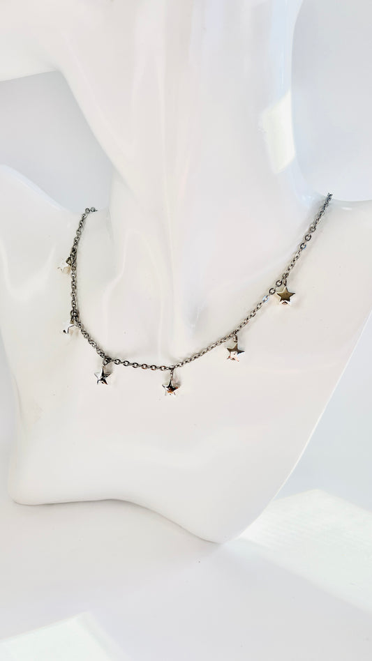 Deja que las estrellas te guíen con este hermoso collar en acero inoxidable, adornado con delicados colgantes de estrellas