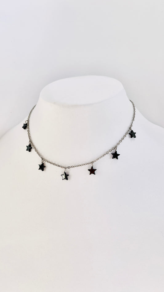 Collar en Acero Inoxidable con Estrellas de Hematite negro