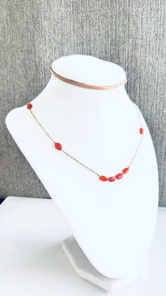 Sutileza y Energía: Collar de Acero con Delicadas Cornalinas