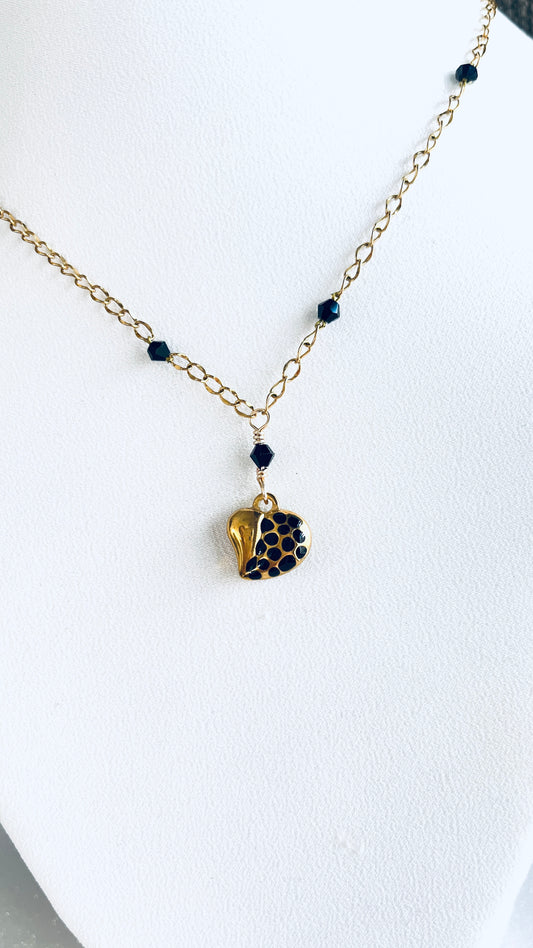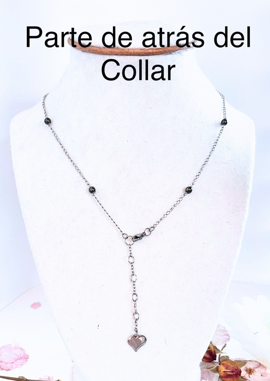 Collar de acero inoxidable con destellos de cristales negros y un encantador dije de corazón con detalles negro