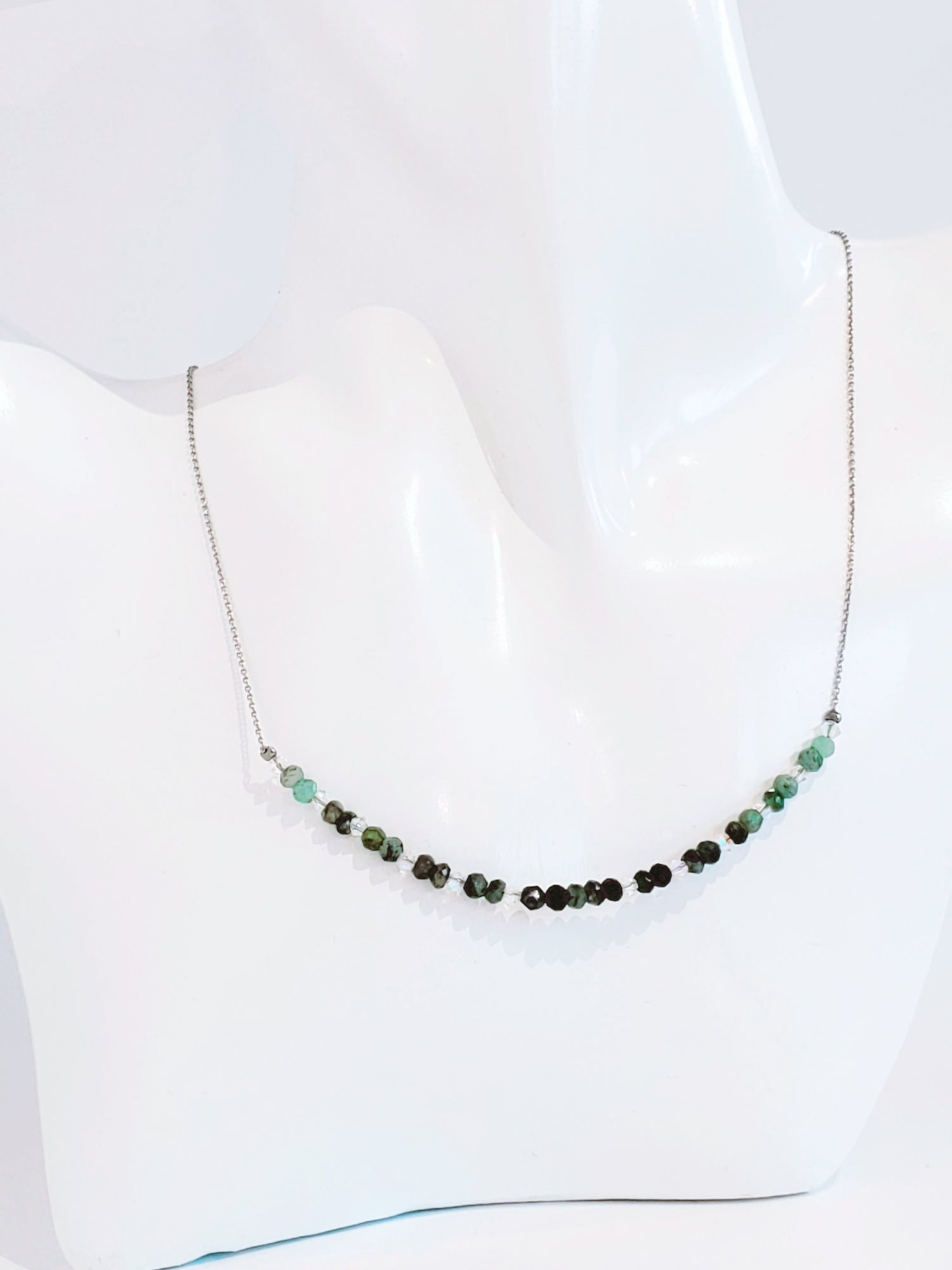 Delicado Collar y Aretes en Acero Inoxidable con Delicadas Piedras en Cuarzo Verde