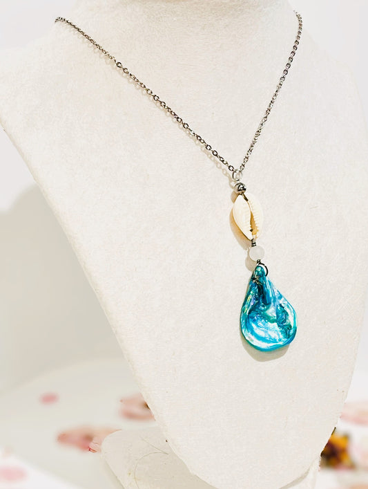 collar en acero inoxidable y Colgante de Caracol y Lágrima de concha