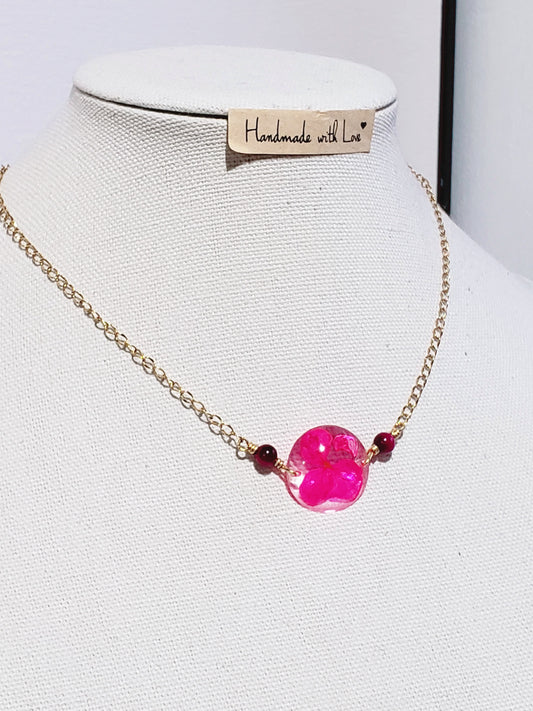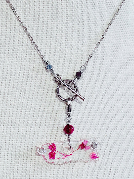 Dos estilo en Un mismo Collar, Collar en Acero Inoxidable con Dije con Mapa De P.R. en Resina con Flores secas y otro dije en Resina con Flor seca color rosa