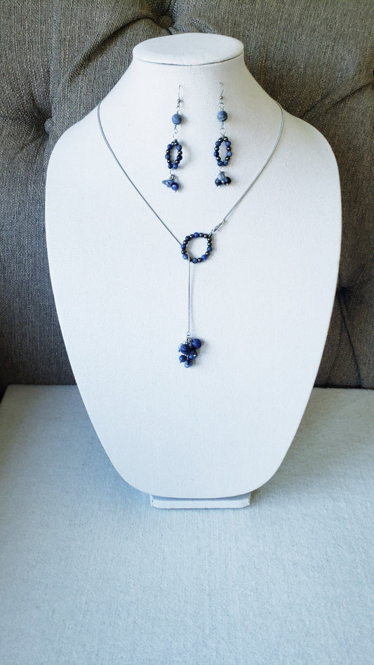 Llamativo Juego de Cadena y Aretes de piedra Sodalita agrega un toque clásico a cualquier look.