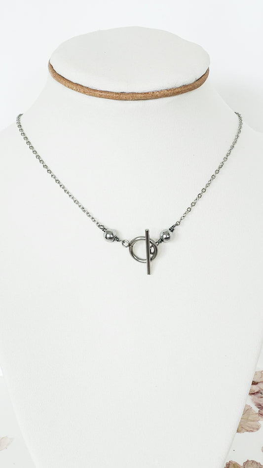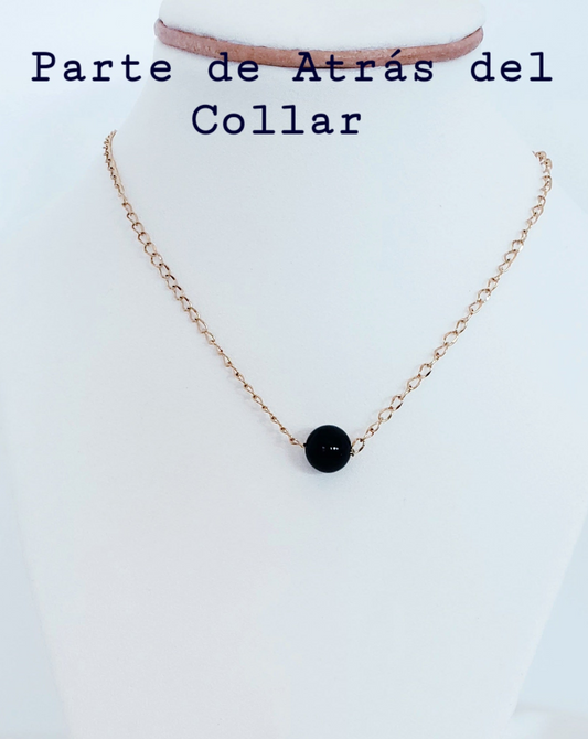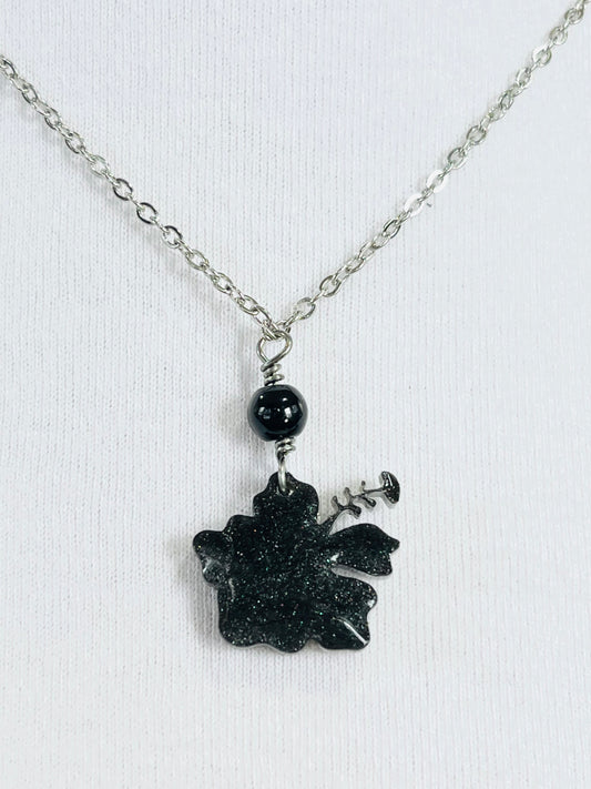 Collar en Acero Inoxidable , con Colgante en Resina color negro Flor Maga