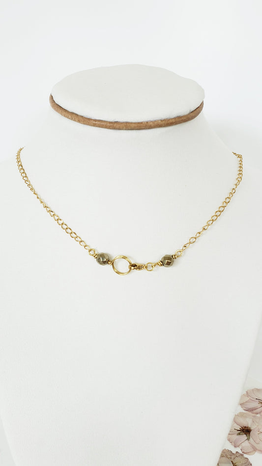 Collar en Acero Inoxidable con La Flor Maga en Resina color Marron con Piedra Hematite Dorado