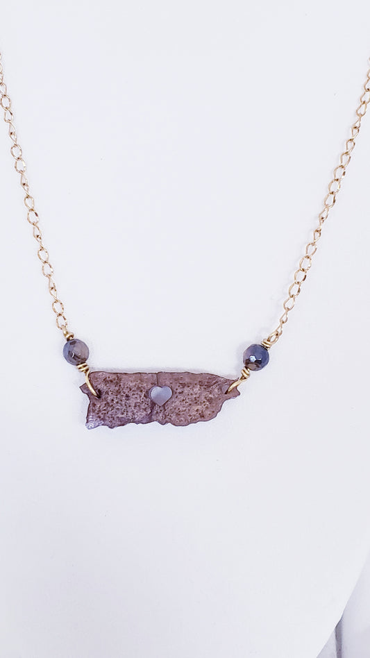 Collar en Acero Inoxidable con Dije de Mapa de P.R en Resina color Marrón