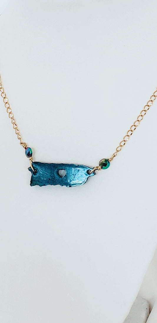 Collar en Acero Inoxidable con Dijes desmontables del Mapa De P.R. en Resina color Verde