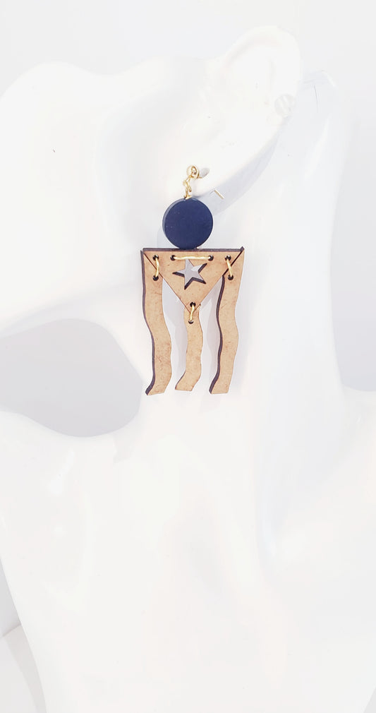Pendientes de Madera con un Toque en Azul de la Bandera de Puertoriqueña