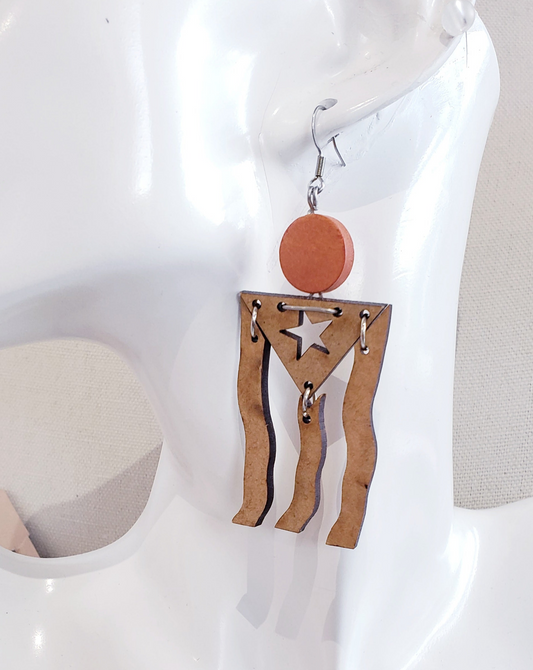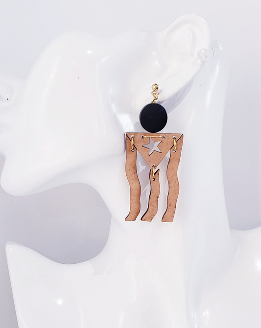 Pendientes de Madera con un Toque de Negro de la Bandera de Puertoriqueña