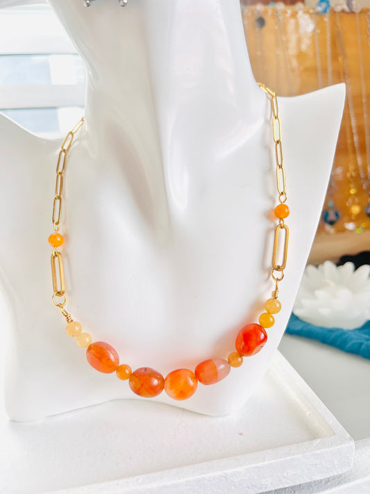 Sutileza y Energía: Collar de Acero con Delicadas Cornalinas